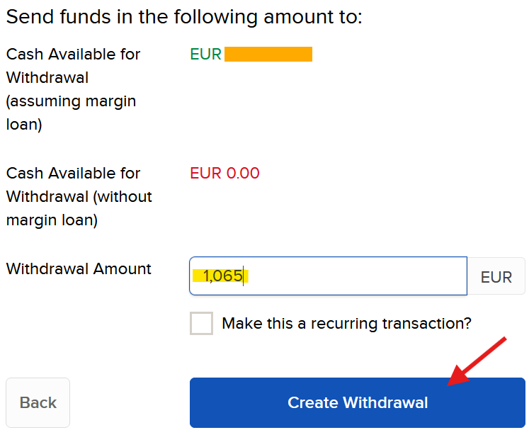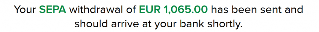 Fill in the amount you want to withdraw, in this case I made a request for EUR 1,065.