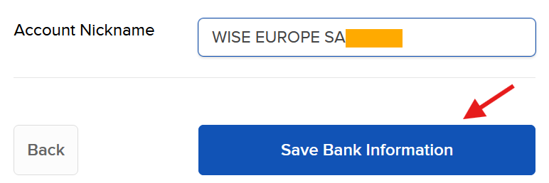 If everything checks out, click on Save Bank Information.