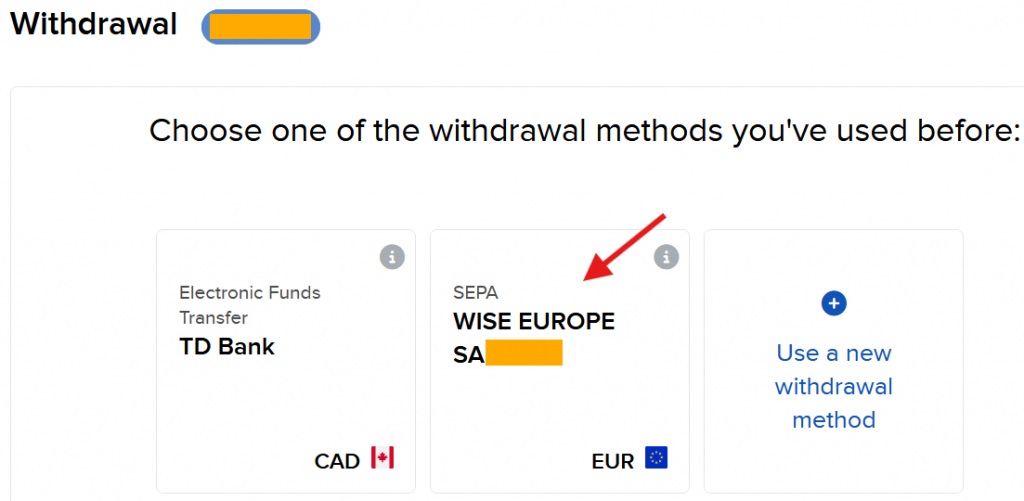On the next screen, click Use a new withdrawal method.