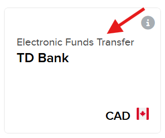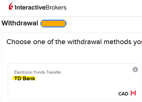 Note that if you have previously set up any withdrawal methods, those will be saved and appear here, e.g. I have linked TD Bank & Wise.