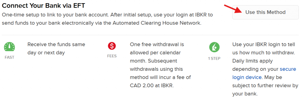 To link your Canadian Bank account to IBKR, click on Use this Method under Connect Your Bank via EFT.