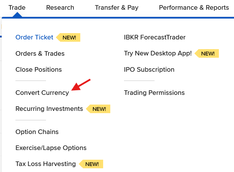 - Convert currency (only if withdrawal currency is different than the currency of cash held in your IBKR account)