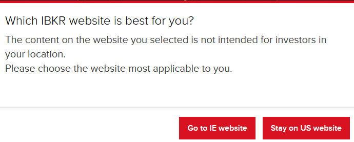Note that depending on your region/location, IBKR will redirect you to their relevant website and you may see this pop-up. Select the option that is relevant to you.